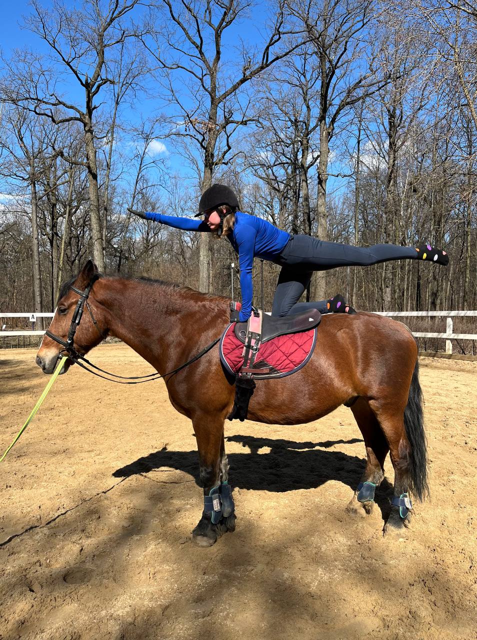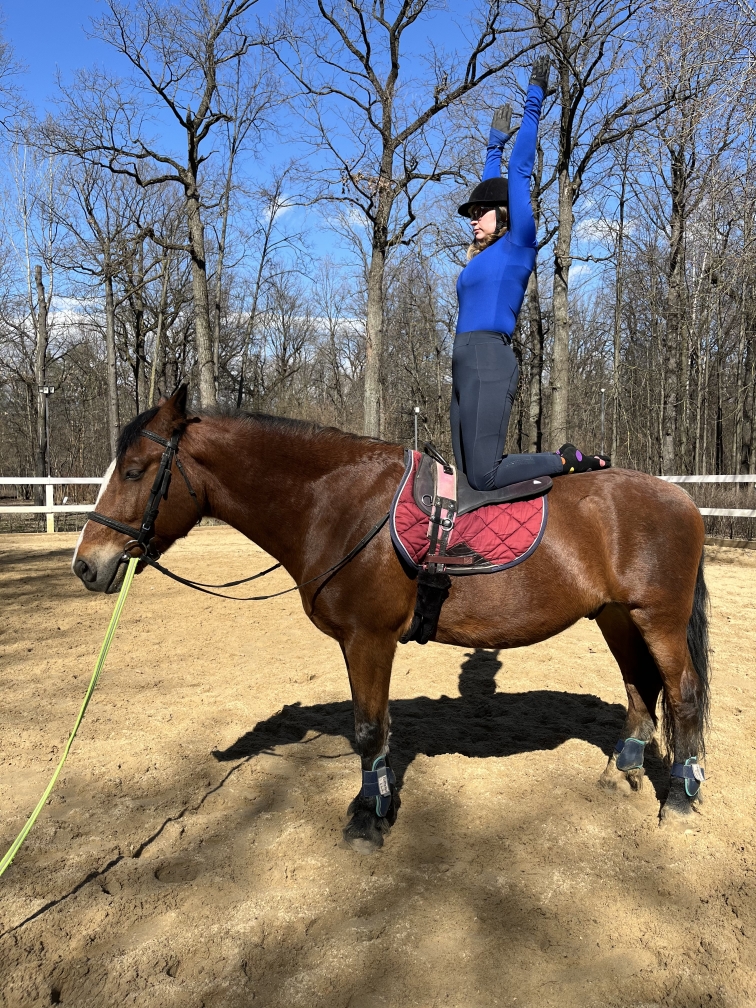 «Коррекция посадки» - занятия для опытных всадников, умеющих ездить рысью и галопом или только рысью. В программу занятия входят те же группы упражнений, но сами задания более специфичные, нацеленные на выработку сбалансированной, раскрепощенной посадки и выполняются на всех аллюрах. Эти уроки позволят вам сделать шаг вперед в вашей езде, независимо от того, ездите ли вы просто для себя или занимаетесь каким-либо видом конного спорта. Мы используем методики Сюзанны фон Дитце, Ж.А. Баллу, а также собственные наработки. Цель занятий - выработать максимально свободную и эффективную посадку, исходя из возможностей конкретного всадника.